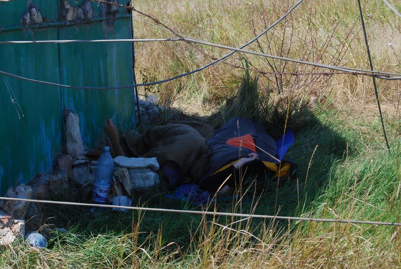 Aus naheliegenden Gründen kamen wir erst sehr spät aus den Federn. Während Taylan gegen zwölf zu einer Phototour durch den Ort und darüber hinaus aufbrach, dösten Jonas und ich noch vor uns her und lasen, während wir am Zelt blieben. Als Taylan zurückkam, berichtete er sehr strahlend von dem was er gesehen hatte. Eigentlich wollten wir heute schon in Richtung Moldawien und Transnistrien weiterfahren, aber es konnte sich keiner dazu motivieren den Anstoß dazu zu geben und irgendwelche handwerklichen Tätigkeiten, worunter das Zeltabbauen ja auch fällt, aufzunehmen. Also einigten wir uns darauf, noch einen Tag hier zu bleiben. Wer weiß, wann man es wieder herschafft. Da wäre es fast ein Verbrechen gewesen, weiterzufahren, ohne sich alles angesehen zu haben.