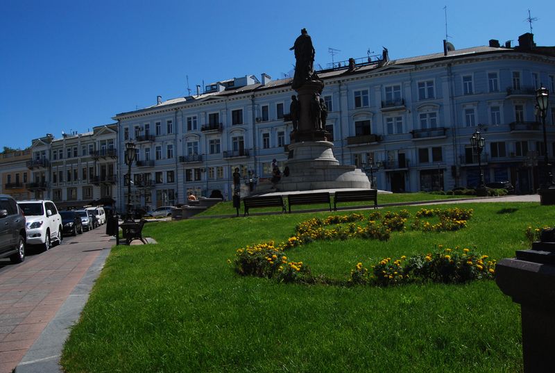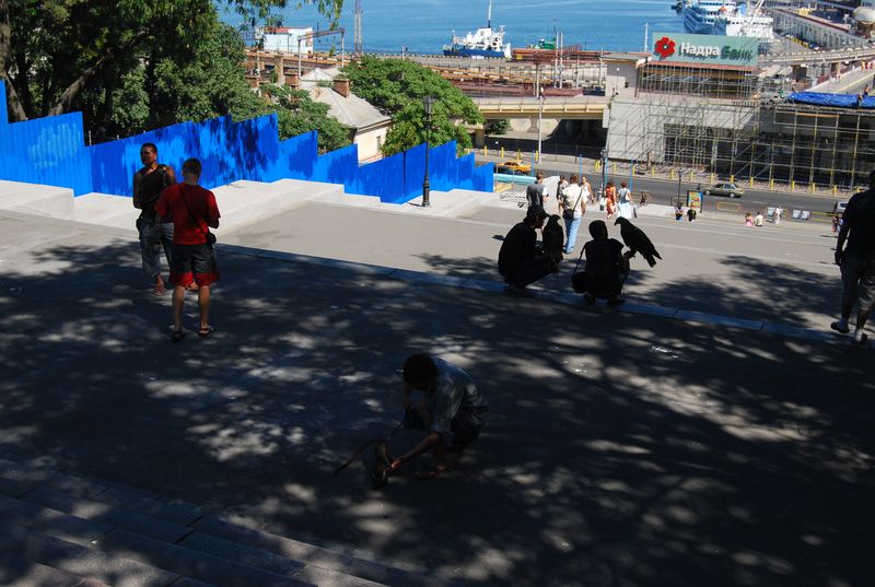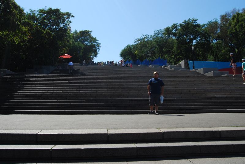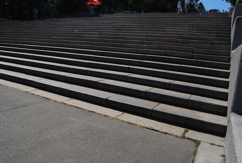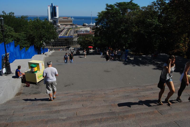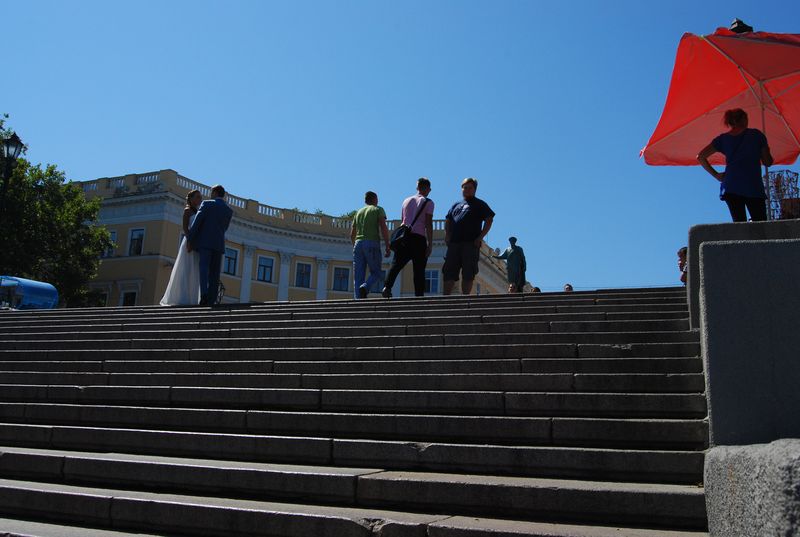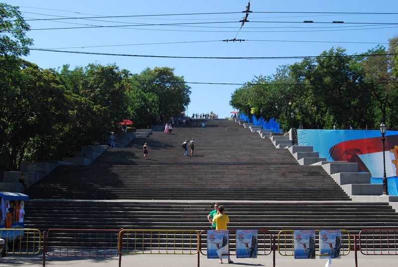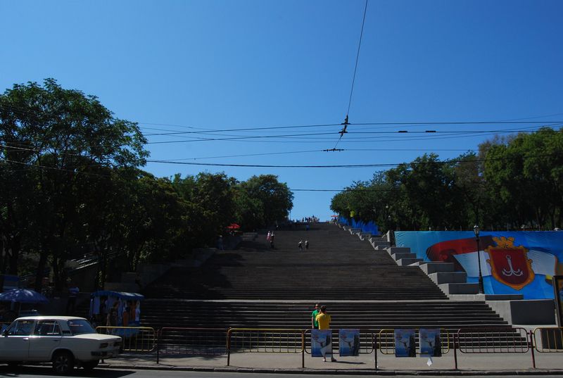 Direkt unten vor der Treppe fanden wir eine Parklücke und stiegen hoch. Die Treppe wurde 1837–1841 gebaut und ist für ihren Auftritt im Film Panzerkreuzer Potemkin von Sergei Eisenstein (1925) bekannt. Sie wurde 1955 nachträglich nach dem Film benannt. Sie ist perspektivisch gebaut und sieht von unten länger aus als sie ist und von oben so, als wäre sie auf der gesamten Länge gleich breit.