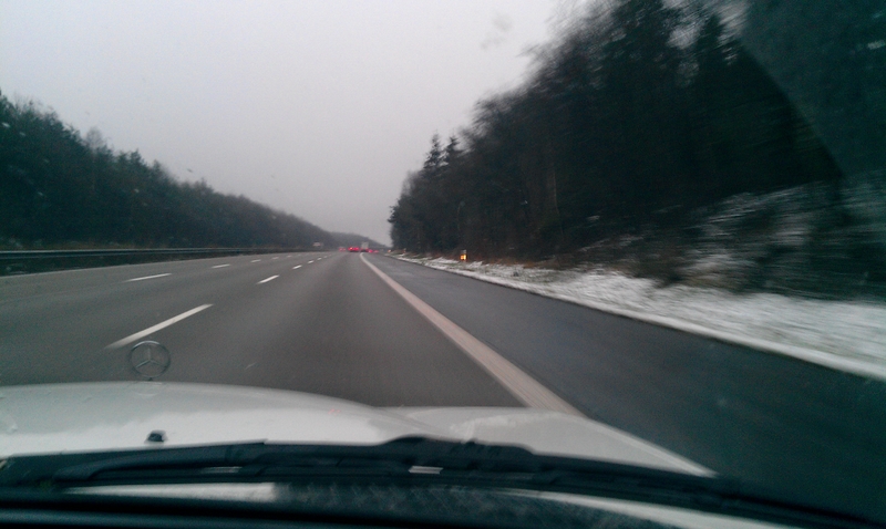 Am Hbf stiegen der Pakistaner, der bis Barcelona mitfahren wollte, sowie zwei Deutsche Mitfahrer bis Rheinböllen und Landau ein. Wir fuhren auf die A61. Ab Koblenz gab es den ersten Schnee dieses Winters für mich.