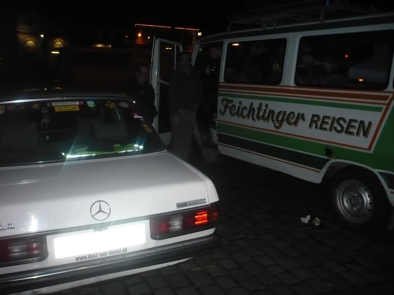 Wir luden am Treffpunkt das Gepäck um und tankten das Pflanzenöl, das Lummi mitgebracht hatte, in die beiden Tanks. Es war wegen der Kälte ziemlich zäh, aber bis hierhin hatte der Bus es auch geschafft und es war ein Wärmetauscher installiert. Wolfi fuhr mit dem Dünomat zurück nach Landau.