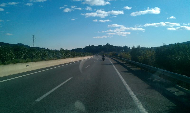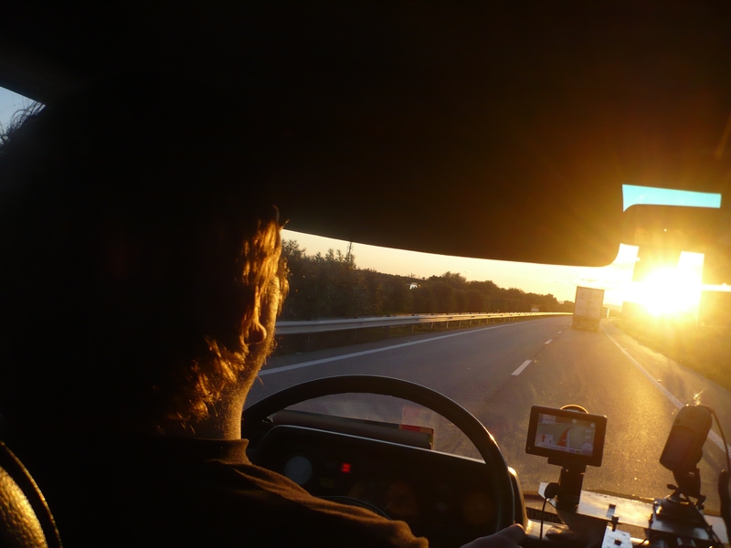 An der nächsten Metrostation ließen wir den Pakistaner aussteigen und fuhren wieder auf die A7 in Richtung Valencia. Gegen Sonnenuntergang übernahm ich das Steuer erstmals.