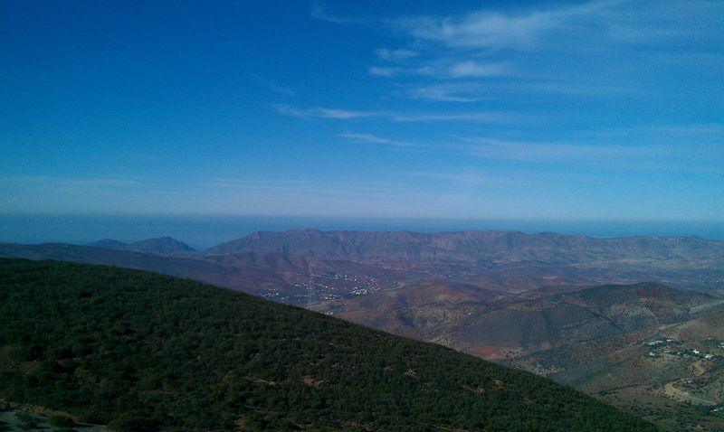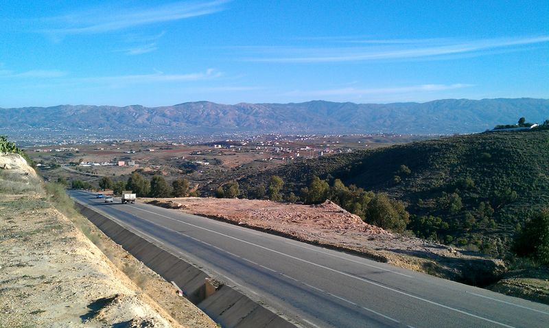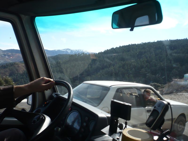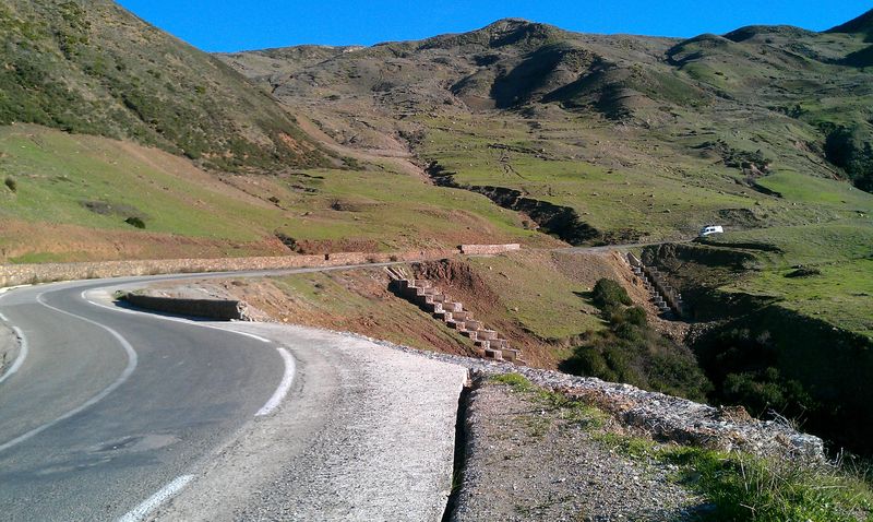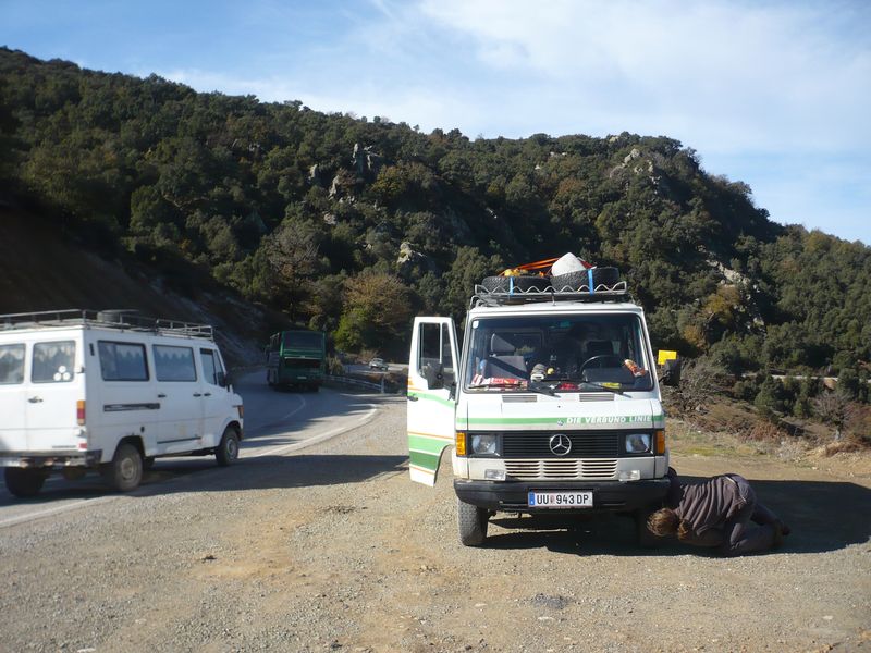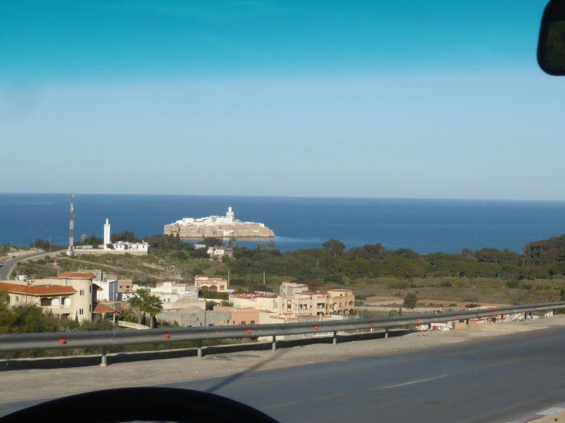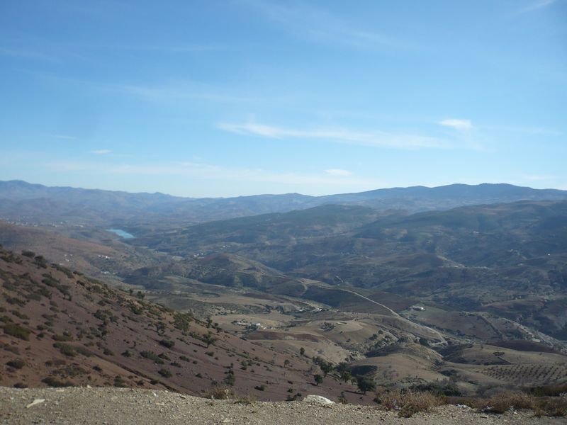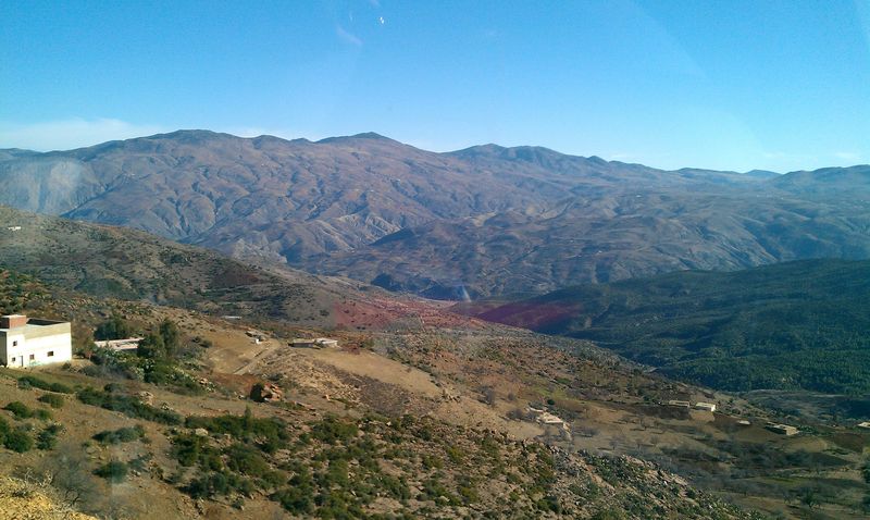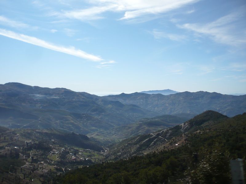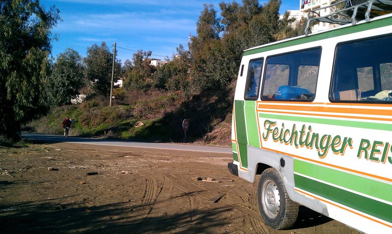 Dann stiegen wir in den Bus, verabschiedeten uns und fuhren in Richtung Nador, quer durch das „gefährliche“ Rif-Gebirge. Die Landschaft war wunderschön. Bei Photo-Stopps kamen öfters Hasch-Händler zum Bus gerannt, um uns zu nerven, worauf hin wir schnell die Flucht ergriffen. Es war aber niemals so, wie man es in den Horrorgeschichten erzählt bekommt, daß man bedroht würde oder ähnliches. Einfach ganz normale Grattler, so wie sie woanders in Marokko statt Hasch halt irgendeinen anderen Scheiß verkaufen würden. Hin und wieder sahen wir das Mittelmeer von der Straße aus.