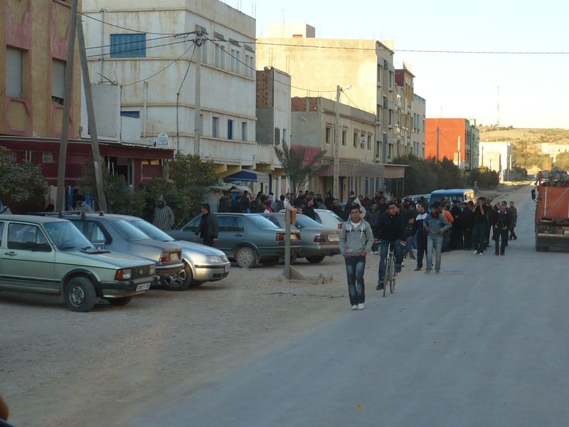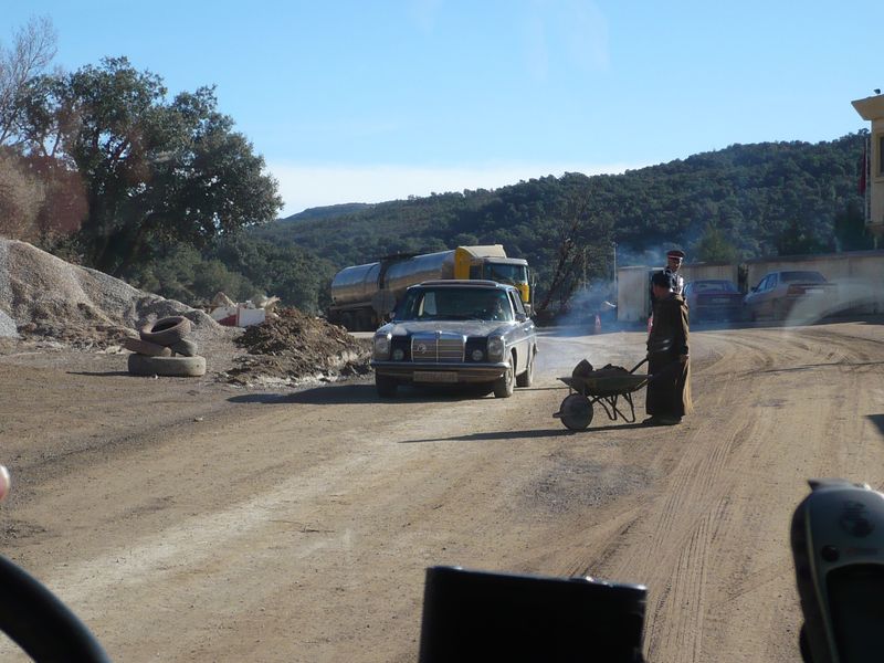 Interessant war, daß in diesem Ort überall Kinder mit selbstgebastelten Ständen saßen, auf dem sie Kioskartikel verkauften. Irgendwann rief mich ein solches zu sich, entfernte die Decke auf dem es saß und zeigte mir die Dieselkanister. Aus Algerien über die grüne Grenze geschmuggelter Diesel für 30 Cent den Liter. Lummi wollte dieses Zeug jedoch nicht tanken.