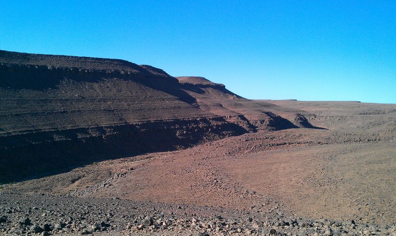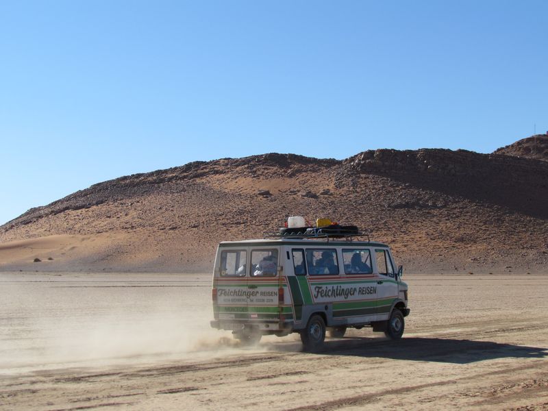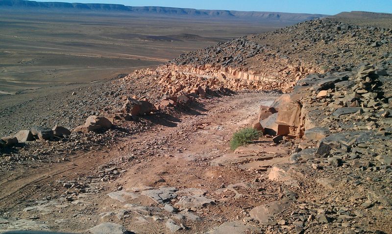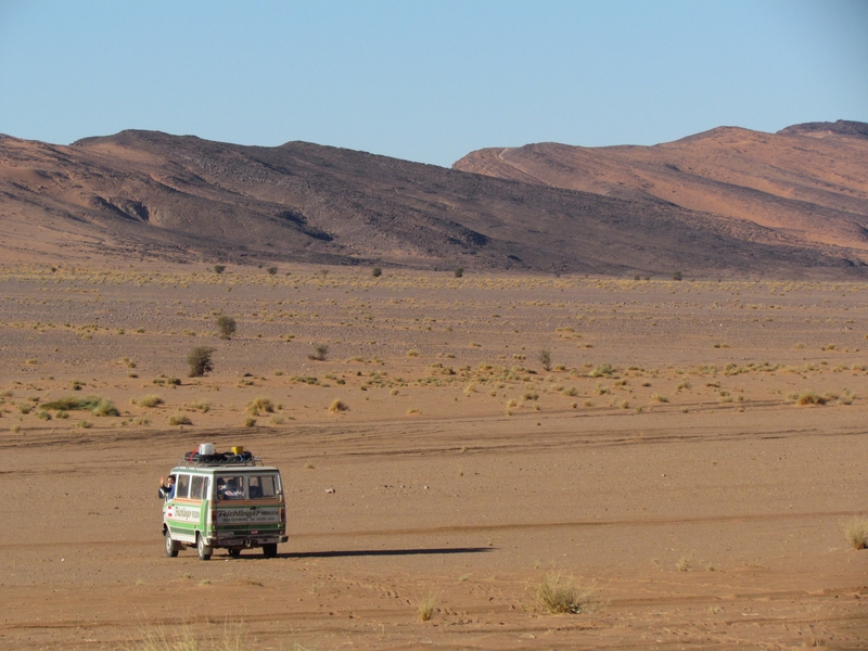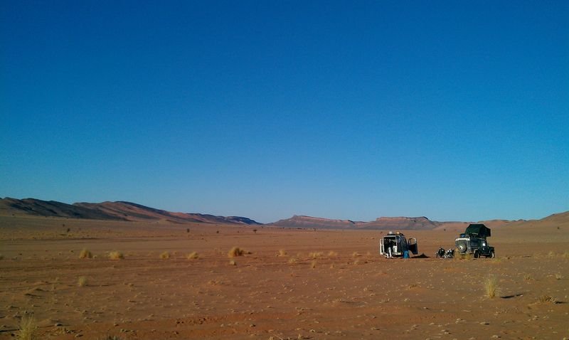Wir sprachen über die weitere Route. Luke und Shelly hatten vor, eine Piste quer durch die Westsahara zu nehmen, von Assa mitten durch das Nichts nach Smara. Dabei überquert man die ehemalige Grenze zur Spanischen Sahara, die für die Marokkaner heute keine Relevanz mehr hat. Lummi und ich hatten uns eine ähnliche Route überlegt, es aber fallen lassen. Nicht nur wegen der Gefahr durch Minen, auch mangels guter GPS-Punkte und weil wir dachten, da ganz alleine mit dem Feichtinger lang zu müssen. Schwer vorstellbar, aber dort ist noch weniger los als auf den Pisten hier oben, und ohne Begleitfahrzeug sollte man dort besser nicht liegen bleiben. Hier würde sicher nach einiger Zeit ein Tourist oder Einheimischer vorbeikommen. Aber nur wenige fahren quer durch völkerrechtlich umstrittenes Gebiet. Die beiden Briten hatten das Sahara-Overlander-Buch von Chris Scott auf Englisch dabei, allerdings in einer nicht mehr ganz aktuellen Auflage. Wir konnten uns noch nicht recht entscheiden, ob wir an den beiden für die Westsaharaquerung dran bleiben würden, bekundeten aber Interesse.