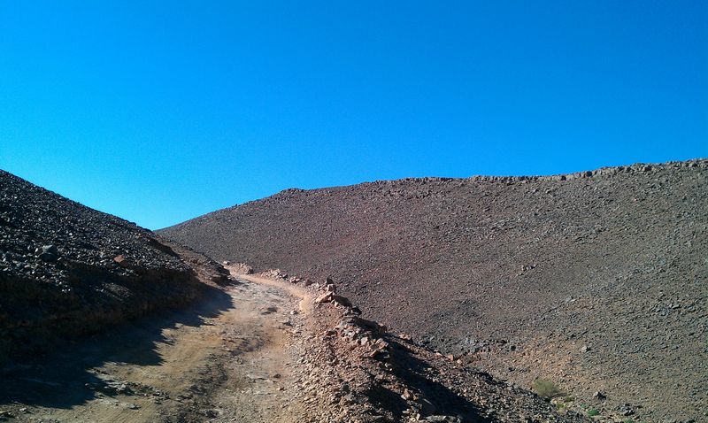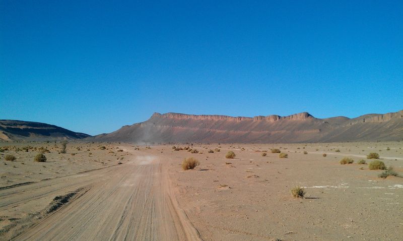 An der in der Pistenbeschreibung genannten Militärstation wurden unsere Pässe kontrolliert. Die Piste führt sehr nah an der algerischen Grenze entlang. Daher ist man stets unter den Argusaugen der grün uniformierten Marokkaner unterwegs, die hier ihre und, im von uns gut bezahlten Auftrag, mit einer elektronisch überwachten Wüstengrenze Europas „Sicherheit“ beschützen.