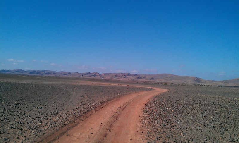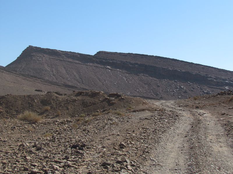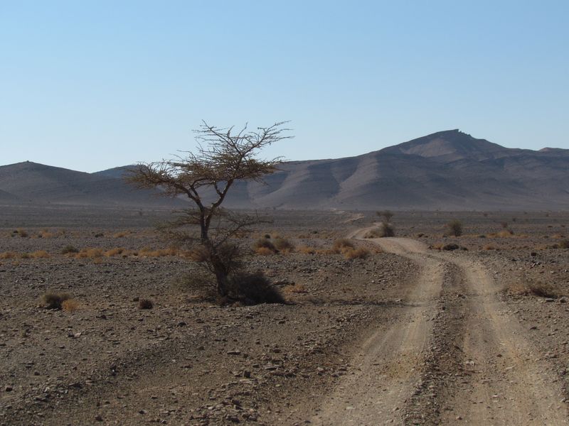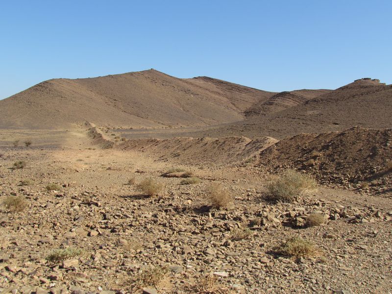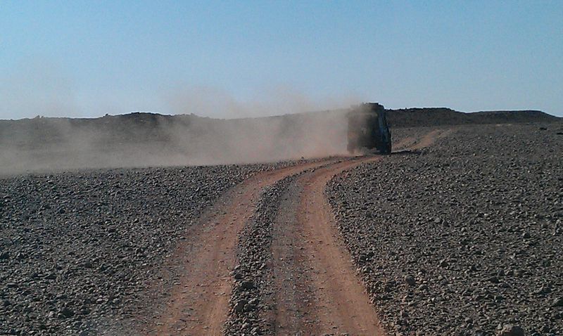 Es ging noch ca. 50 km nach Süden in Richtung Zag, dann kam der Abzweig rechts auf die Piste durchs nichts. Die Briten hatten bereits den Track in ihrem hochmodernen Garmin eingespeichert, der manchem Tablet Konkurrenz machte. Schon bald kamen wir am ersten Marokkanischen Wall vorbei. Der äußerste Wall bildet die Grenze zum von der POLISARIO verwalteten Teil der Westsahara. Wir befanden uns aber noch in Marokko, so war dies nur ein Zeuge des Krieges gegen die saharischen Freiheitskämpfer.