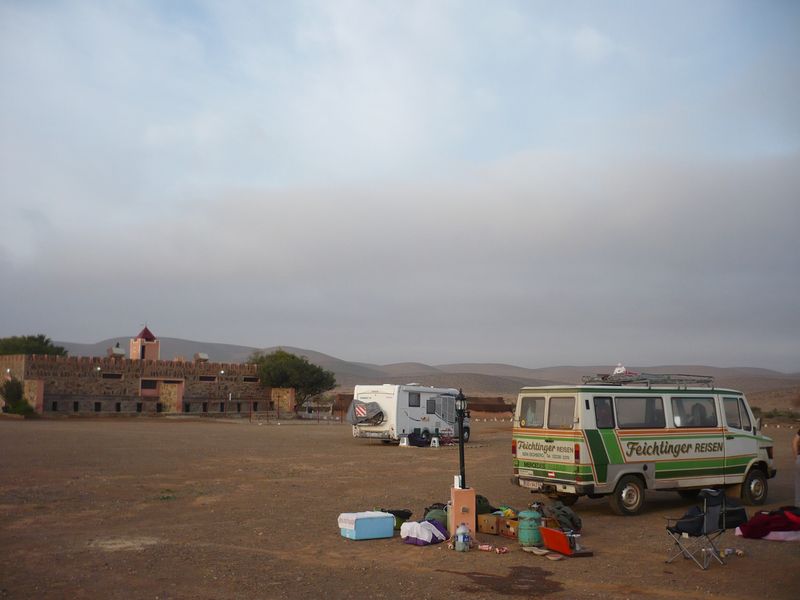 Nachdem deren Formalitäten (Ansprache für den nächsten Tag) erledigt waren setzten wir uns zu Florian und Jörg und sprachen auch über unser Federproblem. Sie konnten aber nicht besonders viel dazu beitragen, außer uns an eine Federwerkstatt in Guelmim zu verweisen.