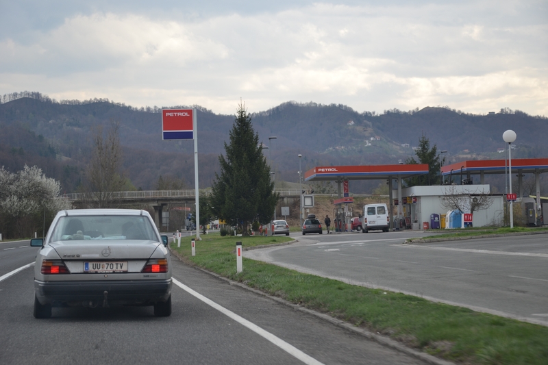 An der letzten Abfahrt auf österreichischem Boden bogen wir ab, um uns die definitiv zu teure slowenische Maut zu sparen. Wir fuhren über Lenart und Ptuj, wo man auf die letzten noch mautfreien Kilometer bis Kroatien einbiegen konnte. In Ptuj tankte ich noch für 40 EUR (1,365 EUR /L) und hoffte damit bis Albanien kommen zu können.