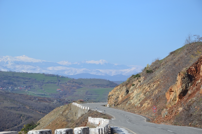 Von Kukes bogen wir dann auf die kurvige Strecke nach Peshkopi ab, wo wir morgen den Pisteneinstieg finden wollten. Die Straße schlängelte sich ewig lang, die wunderbare Landschaft machte das aber wieder wett. Die Sonne war fast untergegangen, als wir ankamen.