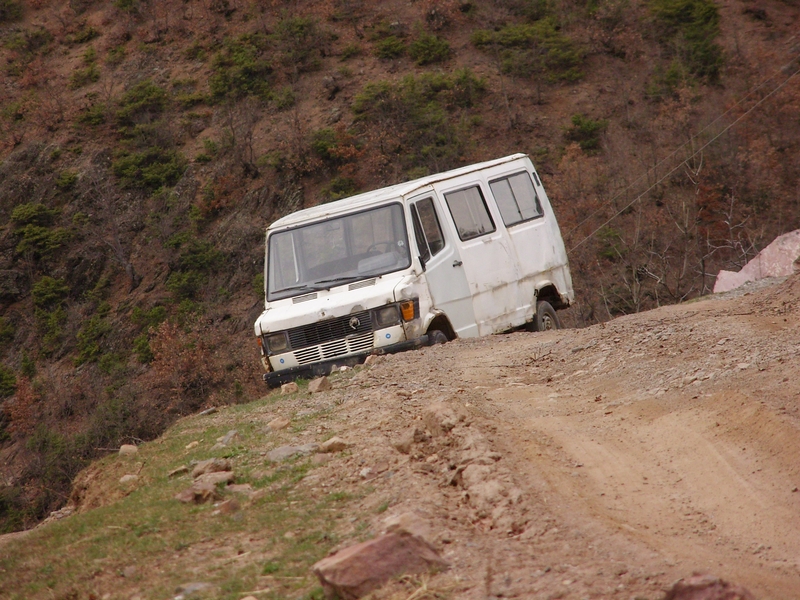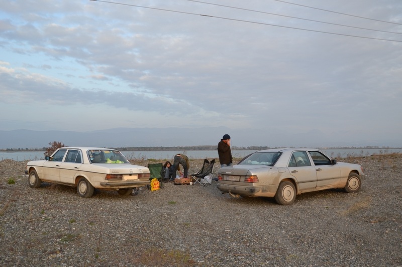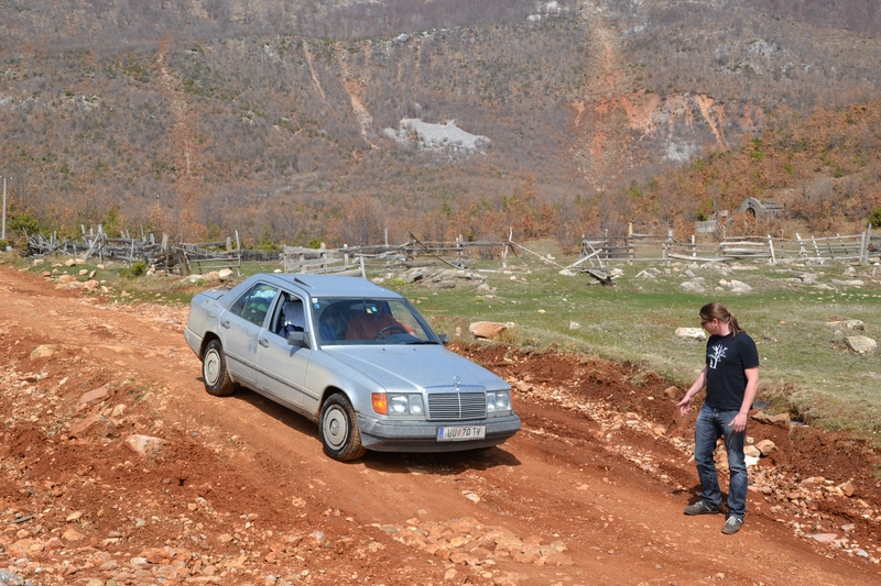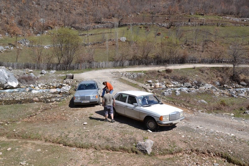 Nach ca. 6-7 Stunden erreichten wir erst festeren Schotter, dann eine brandneue Asphaltstraße, noch weit bevor sie laut Reiseführer beginnen sollte. Eine Wohltat, die Piste machte aber auch großen Spaß. Sie ist gerade noch so mit W123 und W124 zu bewältigen (Unterfahrschutz ist Pflicht). Ob das in ein paar Jahren mit weiterer Verwitterung auch noch so ist, ist abzuwarten. Ziel für den Abend war der Strand Nordalbaniens, wo wir einen Platz zum Wildcampen suchen wollten.