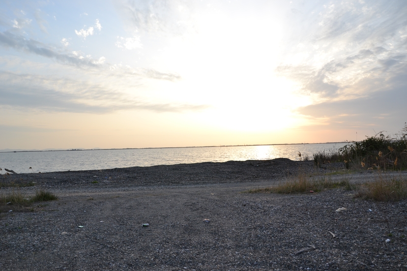 In Laç ging Gruber noch in eine Metzgerei, um etwas zum abendlichen Grillen zu holen, kurz später holten wir in einem Kiosk noch etwas Bier. Dort gab es noch ein kleines Gespräch mit dem ca. 10-jährigen Verkäuferssohn, der mustergültiges Englisch sprach. Wir ließen uns noch den Weg zur Patog-Lagune erklären und verabschiedeten uns. Es war nicht weit dorthin. Wir fuhren bis zum Ende einer Landzunge und nahmen den am wenigsten vermüllten Platz in Beschlag.