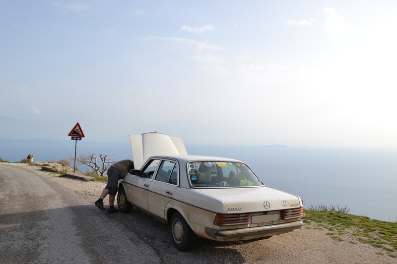 In Vlore verlor ich Lummi und Gruber hinter mir. Da wir mit dem Handy keinen Kontakt aufnehmen konnten, warteten wir vor den Serpentinen des Llogara-Passes (w) bei Dukat auf sie. Als sie nach einer gefühlten Ewigkeit ankamen erzählten sie von einem Unfall, den sie aus der Nähe mitbekommen mußten. Eine Oma wurde vom LKW erfaßt und getötet. Gruber sagte, er wünschte, er hätte nicht hingesehen. Es muß sich kurz nachdem ich mit Jonas an der Stelle vorbei kam ereignet haben.