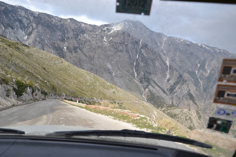 Hinter dem Paß wandelte sich das Bild der Dörfer, man sah mehr griechische Schrift und auch sehr viele griechische Kennzeichen. Er ist Grenze zwischen den Albanischen Dialekten Gegisch und Toskisch. Im Süden, also hier, leben die Tosken, die tendenziell eher den Griechen zugewandt sind.