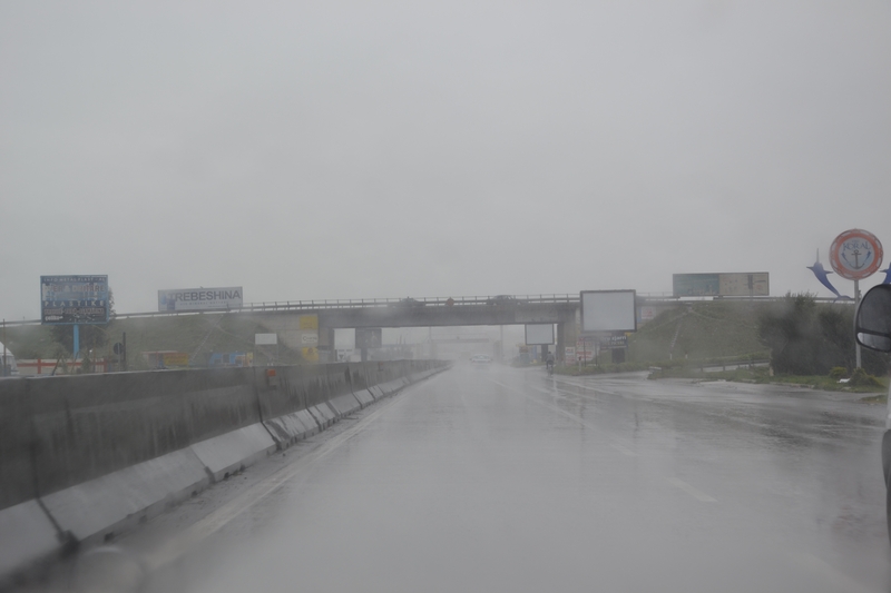Als wir in Fier wieder in der Zivilisation ankamen, gingen wir erst mal in ein Café. Dann wurde Kurs auf Tirana gehalten, ca. 50 km vorher fing es an wie aus Kübeln zu schütten.