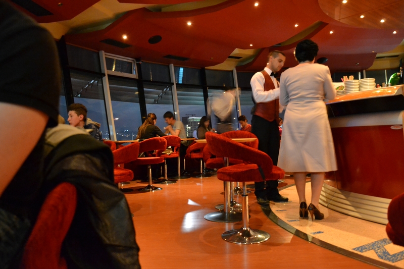 Wir fuhren mit dem Aufzug auf den „Sky Tower“ und tranken dort im Drehkarussell ein Bier