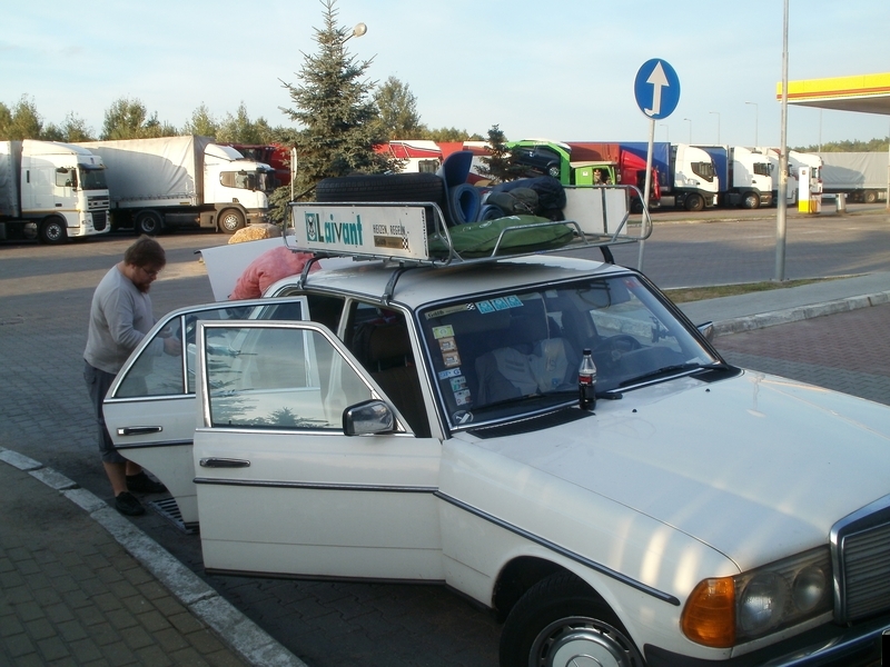 Bei der ersten Gelegenheit drehten wir nach Słubice ab und tankten an einer Shell 50 Liter des mitgebrachten Pflanzenöls. Jan wechselte ein paar Euro in der Wechselstube in Złotys, kaufte davon eine Straßenkarte, Limo und ein paar Snacks.
