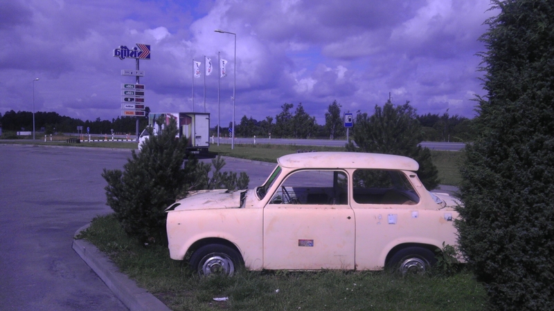 Jan fuhr weiter, wir tankten noch einmal in Polen (19,81 l) und überquerten die Grenze nach Litauen. Die Uhr wurde eine Stunde vorgestellt. Das für mich neue Land kam recht trostlos rüber, an einer Tanke kaufte ich um 11 Uhr Ortszeit Getränke für die gesamte Besatzung, der Diesel war im Vergleich zu Polen und Lettland zu teuer.