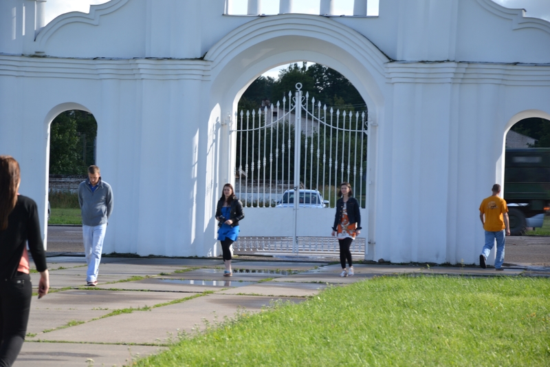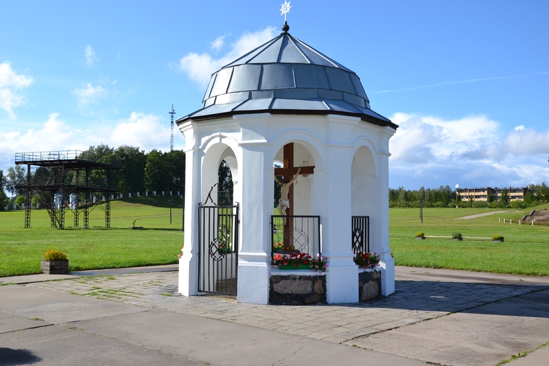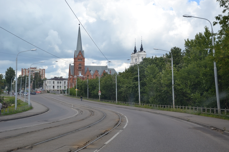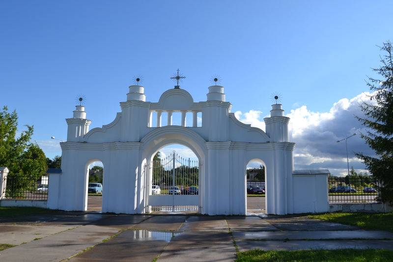 Die Zufahrt zum Campingplatz am Cirišs-See war so schlammig, daß wir fast stecken blieben. Der Platzwart war nicht da, dafür Tausende Fliegen, die sich in Rekordzeit auf uns stürzten. Nachdem sich auch auf Hupen und Rufen kein Verantwortlicher fand, drehten wir ab und suchten einen anderen Platz. An der Wallfahrtskirche im Stadtzentrum angekommen machten wir ein paar Bilder und sahen uns um.