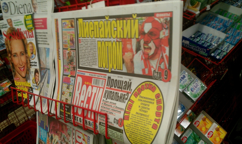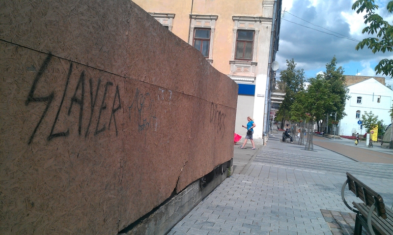 Um 14 Uhr kamen wir in Daugavpils an. Eine nette Kleinstadt mit Fußgängerzone. Wir waren in etwa genauso müde wie hungrig und wollten erst mal was futtern. Dazu fehlten uns aber lettische Mickeymaus, seltsamerweise eine Währung mit niedrigerem Nennwert als der Euro. Ein Euro entspricht gerade einmal 0,70 Lats – sonst ist das Verhältnis ja immer umgekehrt. Einen Bankomaten zu finden war eine Odyssee, anschließend gingen wir in eine Pizzeria, die eher wie eine Behördenkantine aussah. Es war günstig, aber nicht der Brüller.