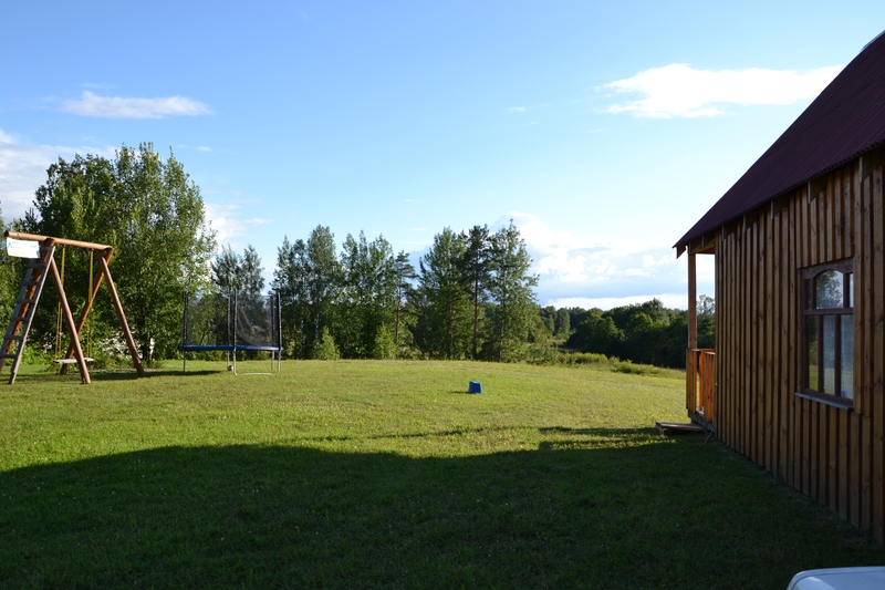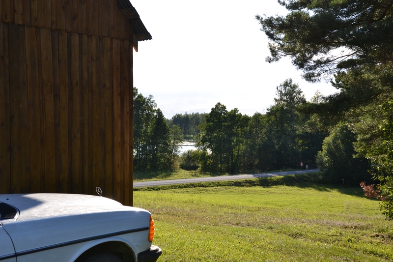 Dort stand eine Infotafel, auf der auch Campingplätze eingezeichnet waren, darunter zwei in Aglona selbst und mehrere im Umkreis. In der Hoffnung, wenigstens einen davon zu finden, fuhren wir nach Norden aus der Stadt raus in Richtung Rušons-See. Die Straße wurde irgendwann zur Lehm-Wellblech-Piste und konnte nur langsam oder schnell befahren werden. Ich entschied mich für schnell. Einen Campingplatz fanden wir nicht. Der Rundkurs endete wieder am östlichen Ortseingang von Aglona, das wir durchquerten, und am nordwestlichen Ausgang, wo wir ja eigentlich herkamen, ein zweites Campingplatzschild fanden. Dort fuhren wir rechts rein und landeten auf einem Bauernhof. Ein verdutzter Junge empfing uns und rief auf unsere Frage „Camping?“ seine Eltern, die uns auf die Wiese hinter dem Haus schickten und sagten, wir sollten uns einfach irgendwo hin stellen. Die Nacht kostete 10 LVL. Wir stellten das Zelt auf und wurden auch schnell müde, nur dunkel wurde es schon nicht mehr so früh wie gewohnt.
