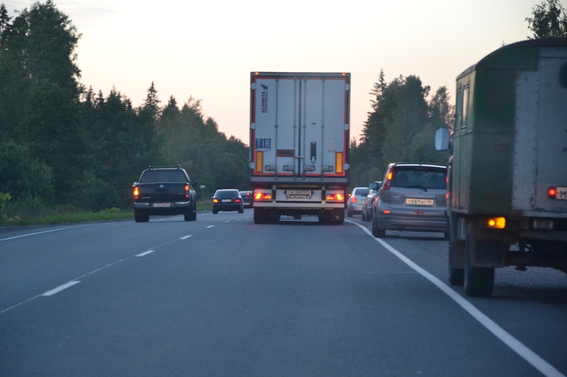 Anschließend fuhren wir weiter in Richtung St. Petersburg, unserem ersten großen Ziel. Bis dahin waren es noch 300 Kilometer und Dunkelheit konnte frühestens gegen Mitternacht erwartet werden.