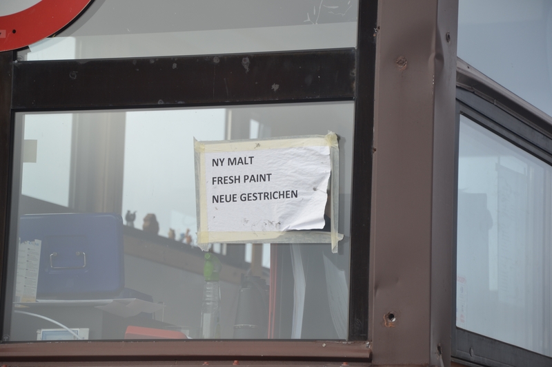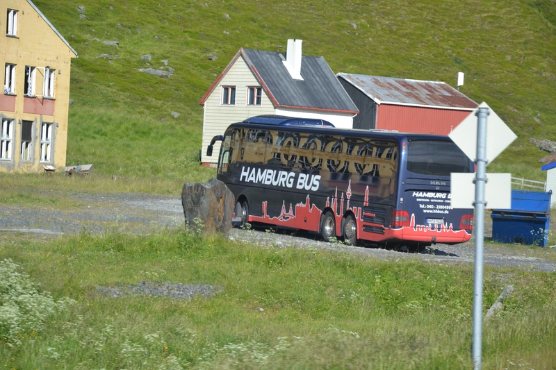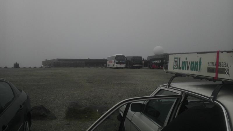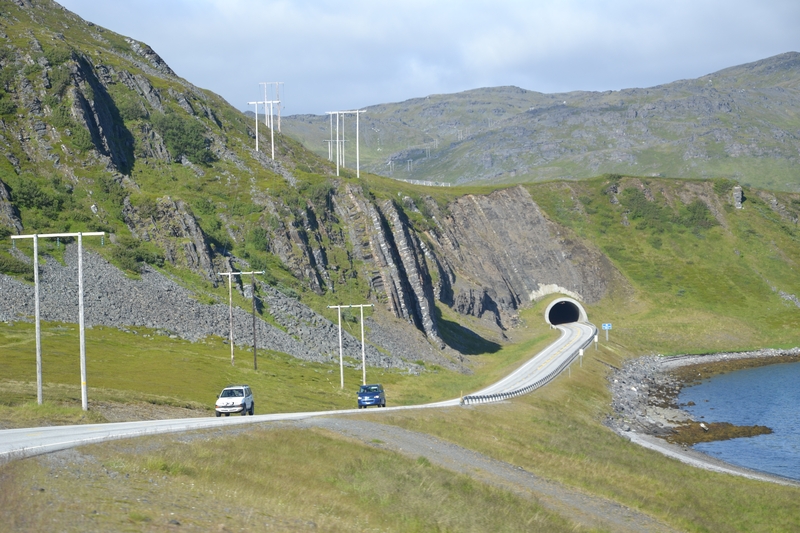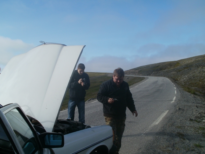 An einem der kommenden Rastplätze schüttete ich jeweils die 20 Liter aus Rußland und aus Finnland in den Tank. Der Qualitätsunterschied war riechbar. Wir fuhren in den Tunnel, die teure Maut war im Juni weg gefallen, nachdem der Tunnel abbezahlt war. Die Mautstation stand leer, die Schranke stramm nach oben. In Honningsvåg sahen wir uns nur kurz den winzigen „Flughafen“ an, sonst war hier nichts zu erledigen. Vollgas zum Kapp. Doch, wie unglaublich lächerlich, genau 8 km vor der Plattform blieben wir liegen. An einer zur Kurve gewundenen Steigung mußte ich den Vorfilter, mutmaßlich wegen dem schlechten russischen Diesel, wechseln.