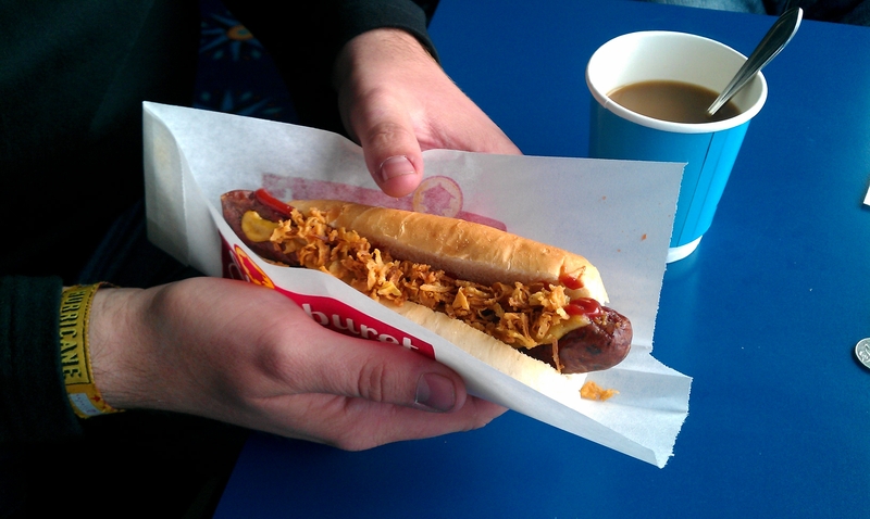Rentier-Hot-Dog und Kaffee für Jan: 10 EUR