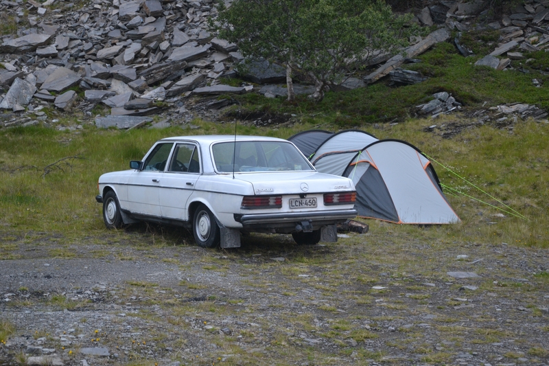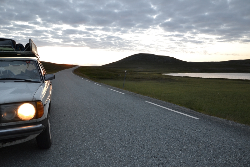 Wie schon tausendmal glühte ich vor, ein bißchen länger weil der Wagen durch die einstellige Temperatur und den Wind gut ausgekühlt war, und drehte den Schlüssel rum. Die Karre orgelte wie wild, aber startete nicht. Als die Batterie schon begann, schwächer zu werden, brach ich es ab. Wir mußten den Wagen unter ungläubigen Blicken der Hurtigruten-Rentner anschieben, die sich wohl nur dachten, wie man mit so einer Schrotthütte zum Nordkapp fahren konnte. Ich tippte auf eine defekte Glühkerze als Ursache. Hatte ich schon öfter und die Symptome waren typisch. Die Diagnose mittels Durchmessen verschoben wir auf später, wenn es wärmer ist. Der Motor durfte nun nicht mehr für längere Zeit ausgeschaltet bleiben.