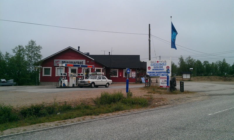 In Alta gaben wir an der Shell die letzten Kronen aus, denn wir verabschiedeten uns nun von Norwegen. Dito von der Küste der Barentssee. Über Kautokeino, einer halb verwaist wirkenden Samensiedlung, die man schnell durchquert hat, erreichten wir den Grenzübergang zu Finnland. Wir stellten die Uhren wieder 1 Stunde vor. 10 km später folgte die erste Tankstelle beim „Tunturikeskus Galdotieva“ (Fjellzentrum Galdotieva). Mit den letzten Tropfen Diesel hatten wir uns hergeschleppt. Es kostete aber, wohl wegen der wohlhabenden Norweger und der exponierten Lage, 1,647 EUR /L. Daher tankten wir erst einmal nur für 15 EUR. Bei dem schweigsamen Finnen, der gerade erst, es war 8 Uhr finnischer Zeit, seine Tankstelle mit Anglershop aufgemacht hatte und wirkte wie aus dem Bett gefallen, kaufte ich noch ein „Galdotieva“-T-Shirt als Souvenir für recht günstige 9 EUR, dann maß ich die Glühkerzen durch. Nummer 1 hatte es erwischt, Bingo! Nachher Ersatz suchen …