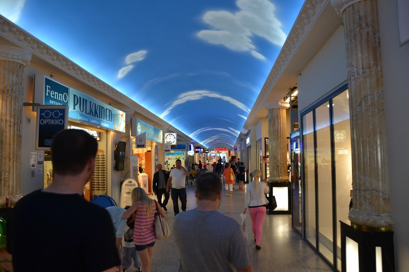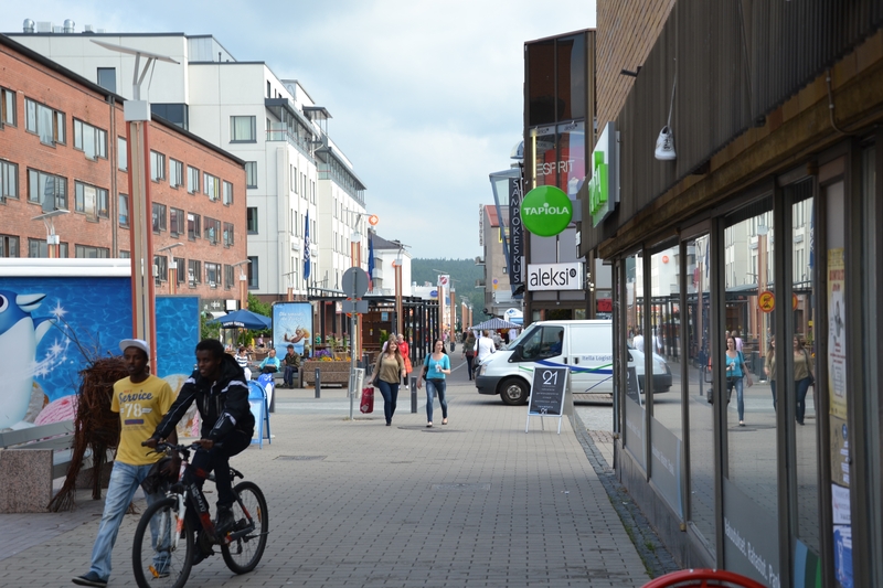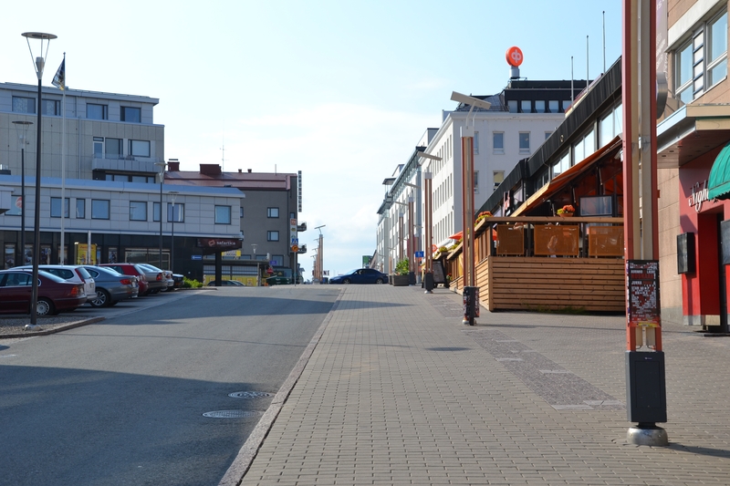 Danach sahen wir uns die Innenstadt von Rovaniemi an. Wir tranken einen Café und genossen die gut 25 °C am Polarkreis, nachdem wir letzte Nacht fast zu Eiszapfen gefroren wären.