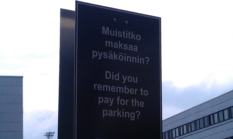 Der Parkplatz funktionierte folgendermaßen: Beim Abstellen des Autos zieht man seine Kreditkarte einmal durch den Schlitz, genauso beim Auslösen. Der Preis wird daraufhin errechnet und abgebucht. Simpel und benutzfreundlich. Nur leider zuhause unmöglich, da es auf Vertrauen basiert. Eine Kamera gab es nicht, nur ein Schild erinnert beim Ausfahren: