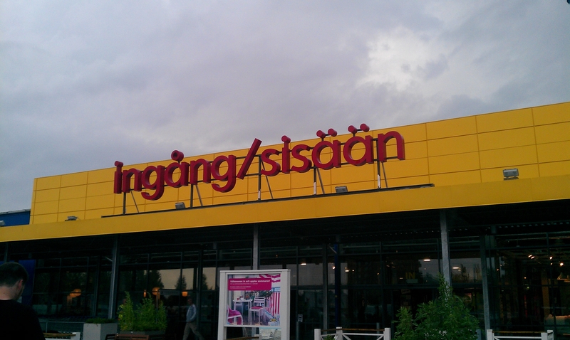 50 km südlich von Rovaniemi kostete an einer Automatentanke „nur noch“ 1,489 EUR /L. Ich kam zwar immer mehr in Versuchung, das Heizöl (Polttoöljy) für 1,119 EUR /L zu tanken, aber blieb gesetzestreu. Hier machten wir jedenfalls voll. Nun hielten wir Kurs auf Tornio. Den Campingplatz dort hatte ich mir schon ausgeguckt, er hatte günstige Mökkis, finnische Holzhütten. Das hätten wir uns mal wieder verdient. Wir fuhren vorher aber noch zum dritten mal für heute nach Schweden, um beim IKEA vergessenes Kochutensil nachzukaufen und jeder zwei Hotdogs zu essen.