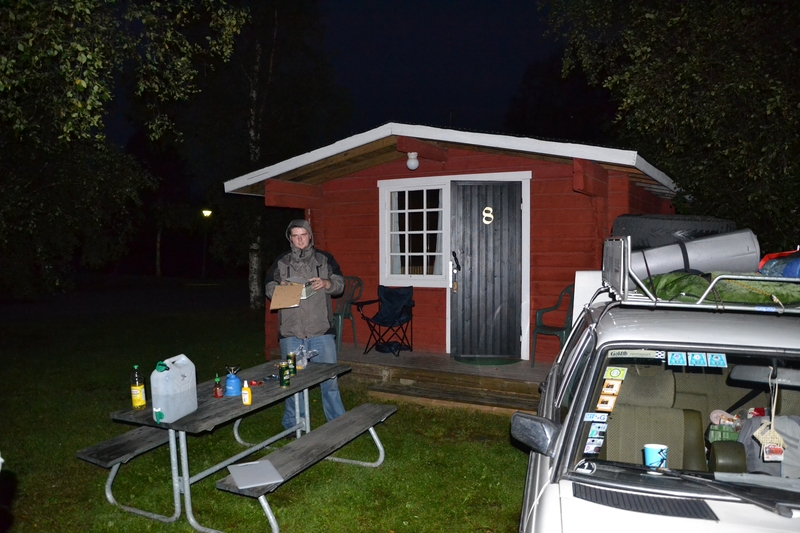 Bei Camping Tornio kamen wir um 21 Uhr an. Die Rezeption wollte gerade zu machen. Wir sicherten uns das letzte Mökki für 52 EUR die Nacht. Das nette Mädel fuhr direkt danach mit ihrem 190D nach Hause. Es wurde zum ersten Mal wieder halbwegs dunkel. Wir kochten uns etwas und tranken ein paar Bier, dann ging es völlig geschafft von der riesigen Strecke heute in die überdachte Falle.