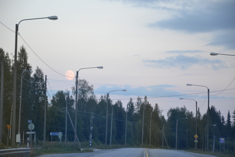 Nun ging es noch ein gutes Stück bis Muurame, irgendwo auf dem Weg dorthin wollten wir übernachten. In dem Städtchen gab es laut Marco-Polo-Reiseführer ein Saunamuseum, das wir uns ansehen wollten. Als wir dort ankamen – zwischendurch fanden wir keinen vernünftigen Platz – folgten wir den Schildern zum Skigebiet. Dort auf einem der verlassenen unbefestigten Parkplätzen konnte man unbehelligt sein Zelt aufstellen, Koordinaten 62.10767° N, 25.69174° E. Wir tranken und unterhielten uns noch, bis es wieder hell wurde.