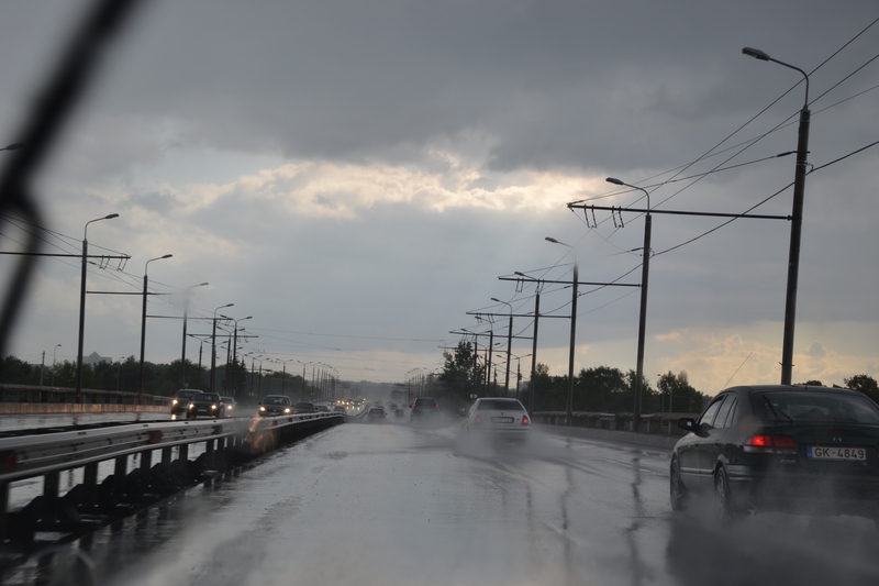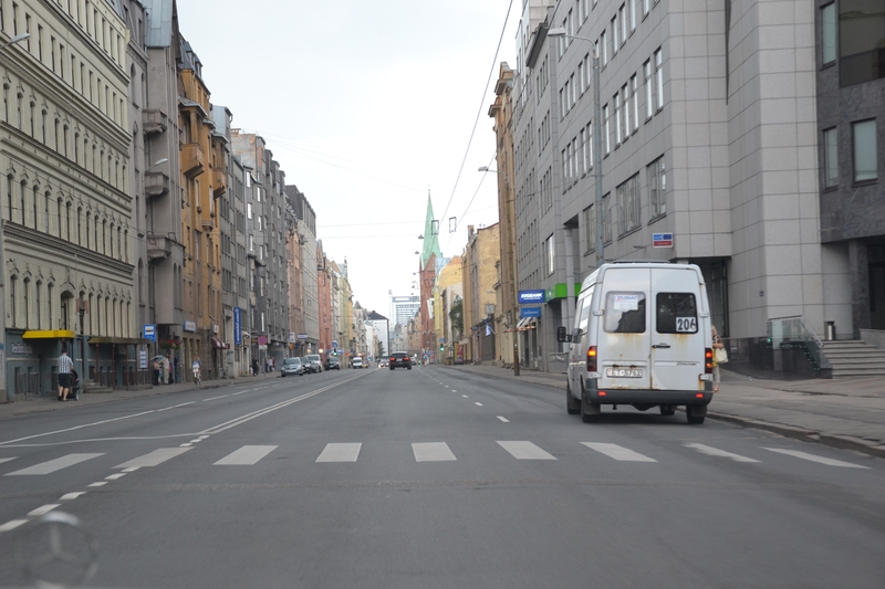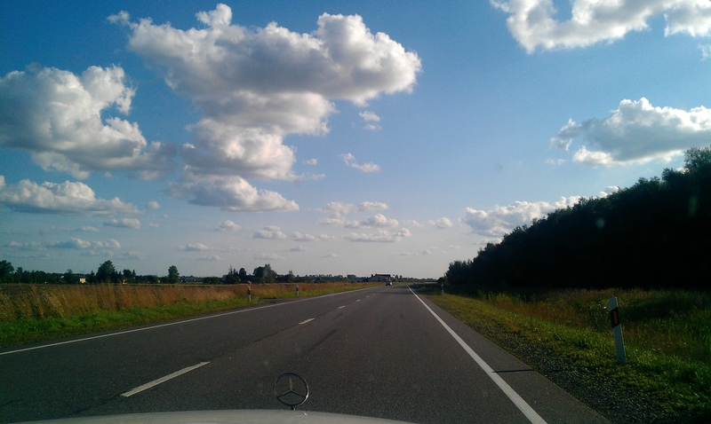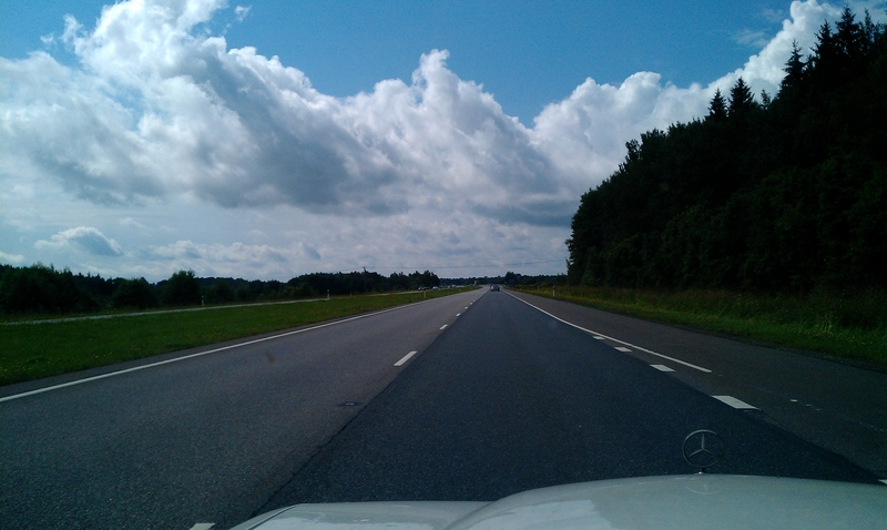 Ereignislose Fahrt bis Riga. Dort steuerten wir den erstbesten Supermarkt an, einen „Maxima“. Wir gaben unsere letzten lettischen Mickeymaus, die wir noch von der Hinfahrt hatten, für Essen und Getränke aus und nahmen eine kleine Mittagsbrotzeit auf dem Parkplatz ein. Wir waren offenbar in einer russischen Exklave gelandet, denn hier sprach weit und breit niemand lettisch. Riga durchquerten wir anschließend ohne anzuhalten. Es fing eh zu regnen an, und Zeit uns umzusehen hatten wir leider keine.