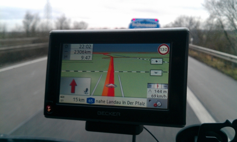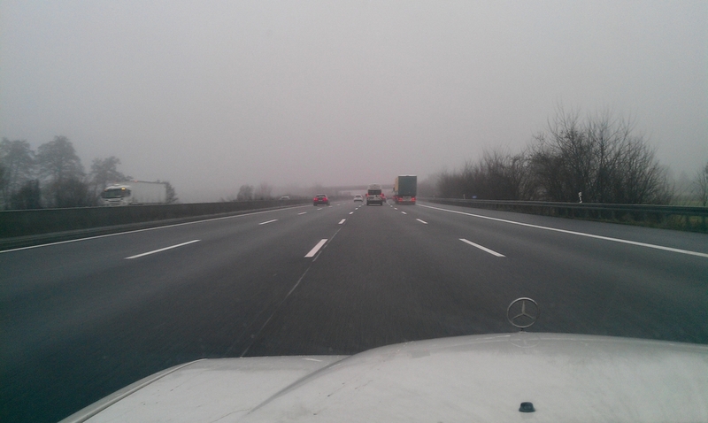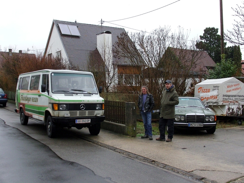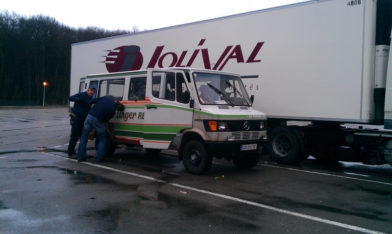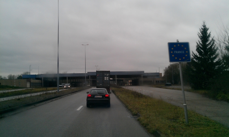 Ich traf bei Wolfi ein. Blondie und Lummi waren gestern schon angekommen und hatten noch irgendwo in der Pfalz 380 Liter Pflanzenöl geholt. Ein Großteil wurde im Bus verstaut, der Rest blieb bei Wolfi für den Rückweg nach Österreich. Wir packten schnell um (km 231.557), es war saukalt, und fuhren in Hagenau über die französische Grenze. Der Dünomat blieb wieder in Pflege bei Wolfi.