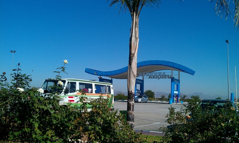 Bei Casablanca wurde wieder vollgetankt (45,19 Liter, 380 MAD, 8,3 MAD /L). Weil es genug Tankstellen gab benutzten wir bis zur Westsahara nur einen der zwei Tanks. Ansonsten eine ereignisarme Fahrt auf der marokkanischen Autobahn, die, es sei noch einmal gesagt, nur zu empfehlen ist, wenn man wenig Zeit hat.