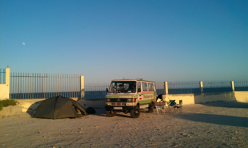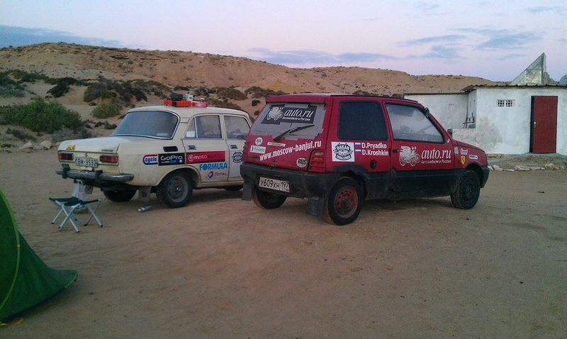 Als ich um kurz vor 8 aufwachte saßen Blondie und Lummi schon draußen und tranken ihren Tee und Kaffee. In der Nacht waren zwei Russen mit altem Lada und Moskwitsch angekommen, die ich mit einem „Privjet Towarischtsch“ begrüßte, was sie sehr lustig fanden. Wir unterhielten uns noch kurz, sie waren auf dem Weg nach Gambia.