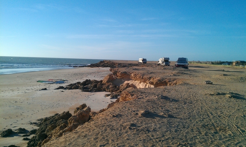 An der Ortseinfahrt von Laayoune füllten wir beide Tanks und einen Kanister auf (130,20 Liter, 781 MAD, 6 MAD /L). Kurz dahinter kam eine Polizeikontrolle, bei der erstmals unsere grüne Versicherungskarte überprüft wurde. Außerdem wurde hier wieder ständig nach den Fiches gefragt, die wie geschnitten Brot weggingen.