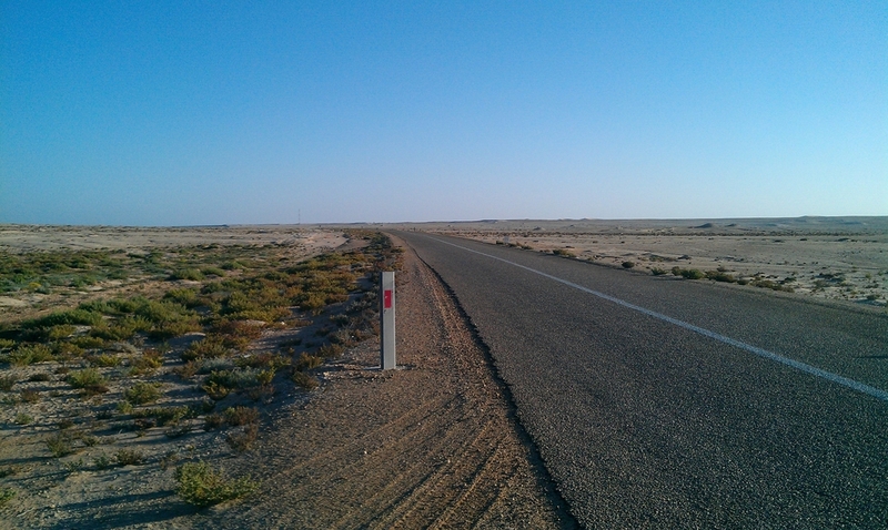 Tagesziel Nouadhibou, Mauretanien. Um möglichst früh über die Grenze zu kommen, klingelte der Wecker um 6.30 Uhr, es gab kein großes Frühstück, nicht mal einen Kaffee für Lummi, sondern es wurde direkt aufgesessen. Abfahrt um 7.10. Es war, obwohl wir unsere frühe Abfahrt gestern abgeklärt hatten, kein Wärter zu finden, der das Tor öffnet, daher mußten wir es auf die harte Tour machen und hupen. Schwupps, war der Wärter da und das Tor auf.