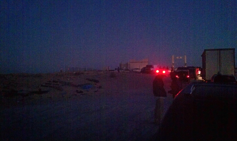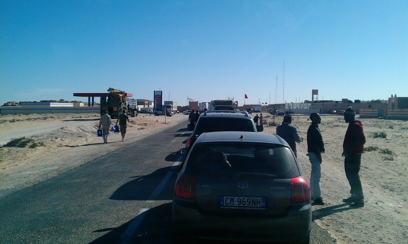 Nun hieß es warten, inmitten von Banditen und Minen. Schlepper umringten uns und verlangten 50 EUR für ihre Hilfe. Brauchten wir nicht. Zwei Italiener waren so blöd, sie zu zahlen, kamen jedoch keinen Deut schneller über die Grenze. Einheimische versuchten, sich an der Schlange vorbeizudrängen und aus der Wartereihe eine Traube zu machen, doch mit vereinten Kräften schafften es die Wartenden, sie nicht reinzulassen. Um 20.42, es war stockfinster, fuhren wir auf den ersten mauretanischen Asphalt.