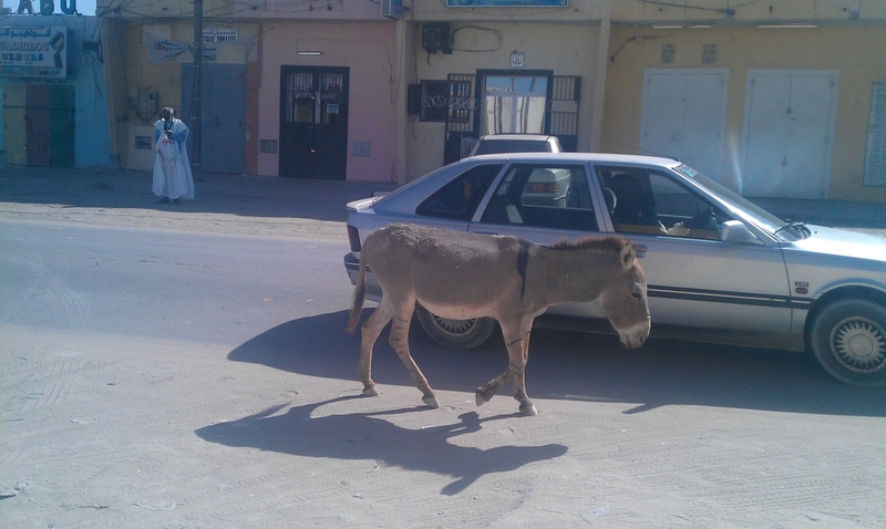 Alle Geldautomaten, die ich ausprobierte, waren außer Funktion oder nahmen meine Karte nicht an. Western Union wollte nur freche 360 Oguya für einen Euro rausrücken. Aber heute nicht. Es war Freitag, also muslimischer Sonntag, und alle Wechselstuben hatten geschlossen. Auf später verschoben. Bei einem Souvenirhändler holte ich mir ein recht nettes Mauretanien-Shirt und wechselte notgedrungen für 360.