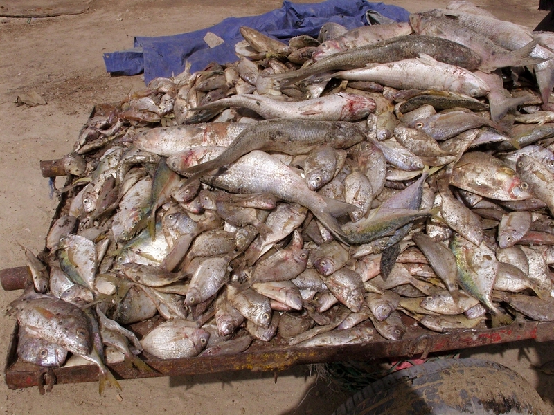 Nebenbei angemerkt war ich diesmal derjenige mit den besten Französischkenntnissen an Bord, und ich habe es nie in der Schule gelernt und kann lediglich aufgeschnappte Wörter aneinanderreihen. Vielleicht war es daher auch ein Mißverständnis, als Blondie loszog und Bilder von den Kähnen und der Verkaufshalle machte. Lummi und ich blieben im Bus, und der Guide war mit Blondie über eine halbe Stunde verschwunden. Als sie zurück kamen gab Blondie nur das Kommando „los, so schnell wie es geht!“. Er war wegen der Photos kurzerhand vom Chef der Hafenkommandantur verhaftet worden, sah recht blöd in den Lauf einer AK 47 und wurde nur wegen der Connections des Guides so schnell wieder rausgelassen. Die Bilder auf der Kamera mußten gelöscht werden, die auf dem iPhone blieben unentdeckt. Mit ihm war für den restlichen Tag nicht mehr viel anzufangen.