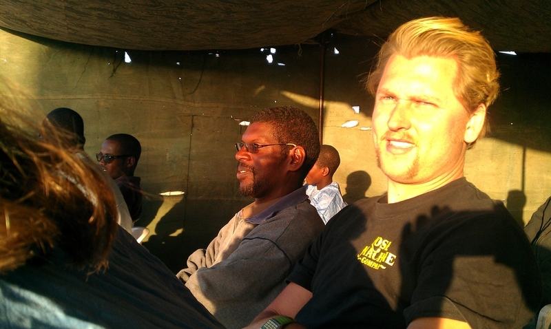 Es war dunkel, als wir zurück auf Abba waren und dort die Silvesterfeierlichkeit nachholten. Böller hörten wir nirgends. Wir machten ein Feuer in der Tonne, die da so rum stand, und verbrannten neben dem Holz allen Müll, den wir auf dem Platz fanden, und das war nicht wenig. Alex saß dabei und erzählte, wie er sich mit Tauschhandel mit alten Schuhen und Jeans den Diesel in Marokko erschnorrt hatte. Coole Sache jedenfalls, kann man auch mal nachmachen.