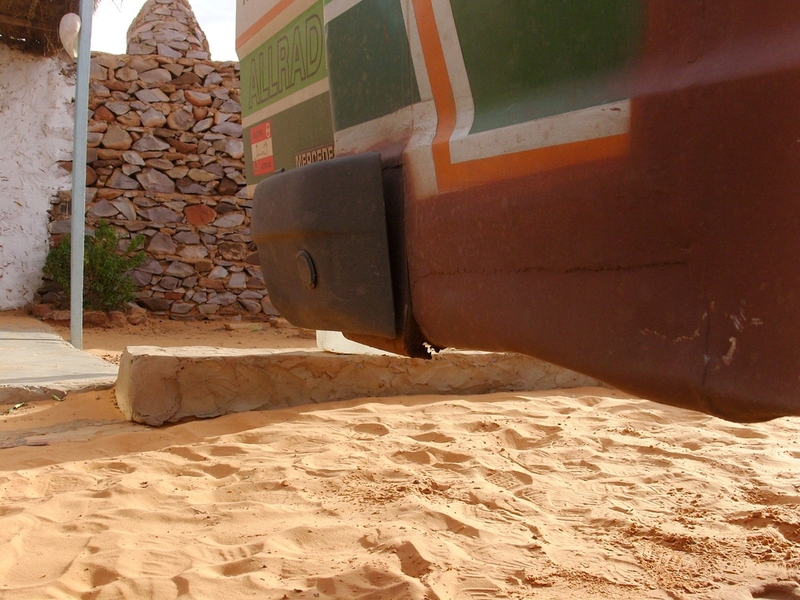 Er hatte sich den Patrol hier in Mauretanien gekauft, aber schon vor ein paar Jahren. Zwischendurch war er einfach mit den mauretanischen Kennzeichen nach Deutschland gefahren. Das konnte ich nicht glauben. Aber er erzählte, daß es bei der EU-Einreise einfach niemanden interessiert. Der Paß ist relevant, der Rest nicht. Theoretisch dürfe man nur 180 Tage mit Nicht-EU-Kennzeichen fahren, aber da die Einreise des Autos nirgendwo registriert wird, bleibt es bei der grauen Theorie. Er erzählte, er sei mit dem Auto auch noch in die Türkei gefahren, und dort an der Grenze wußte man nichts mit ihm anzufangen. Er wurde beglückwünscht, daß er der erste sei, der mit mauretanischen Kennzeichen in die Türkei einreiste. Es mußte eine neue Auswahlmöglichkeit im Computersystem für ihn geschaffen werden.