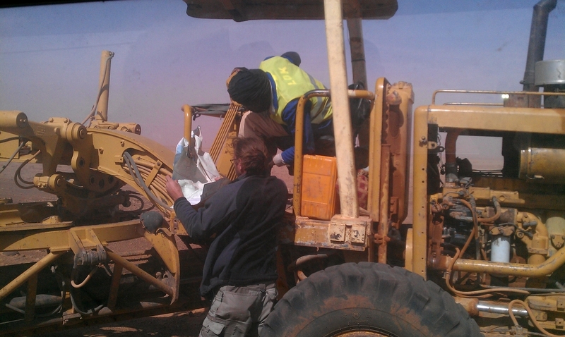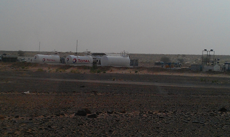 Also Rückzug und in Ouadane am Polizeiposten gefragt. Überall stand Gerät von Firmen wie Total, Schenker DB oder Stinnes umher und zeugte davon, daß hier nach Öl gesucht wird. Die freundlichen Gendarmen sagten uns, wir müßten durch den Ort fahren. „Kein Problem, viel Sand, Reifendruck absenken, 1 Stunde“. Danke!