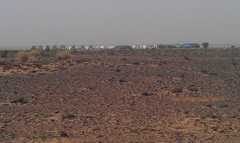 Um 10 Uhr weckte mich Blondie, um 11.15 Uhr, nach kurzem Frühstück, fuhren wir los. Tagesziel war das „Auge der Sahara“, der Krater Guelb er Richat (w), in den wir hinein fahren wollten. Sein Ursprung ist ungeklärt, und man sieht ihn eigentlich nur aus dem Weltraum, trotzdem war es ein unbedingtes Ziel dieser Reise. Die Tramper fuhren wieder mit, sie wollten den Krater ebenfalls sehen. Oder was man von ihm halt so sieht, wenn man mitten drin ist.