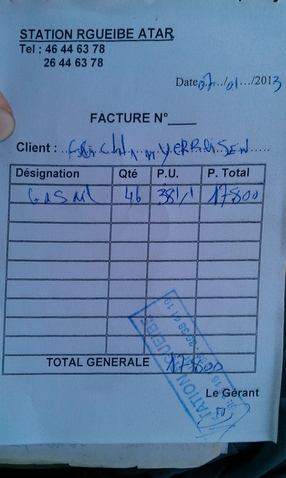 Im Ort tankten wir an der Station Rgueibe Atar 46 L, 381 UM /L, 17.800 UM.