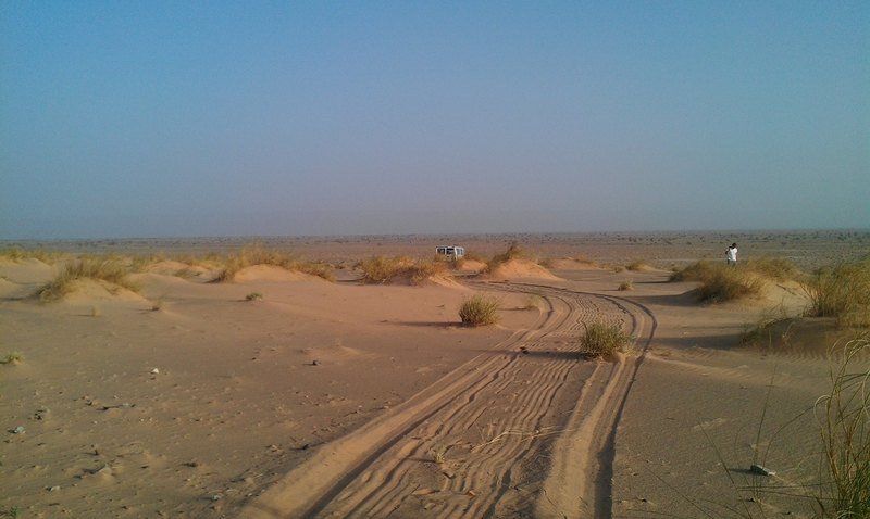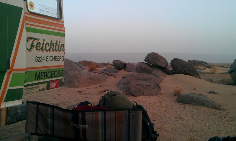 Nach dem Aufwachen in der wirklich ruhigen Nacht, ganz alleine mitten in der Oase, fuhren wir nach dem Frühstück auf dem Parkplatz nach Atar zurück. Die Oase Mherit fanden wir auch auf dem Rückweg nicht. Ziel war heute Choum an der Erzbahnlinie, von dort wollten wir Richtung Westen an der Bahnstrecke entlang zum Ben Amira (w), dem drittgrößten Monolithen der Welt, fahren da wir es von Nouadhibou aus ja nicht schafften. Die einzigen beiden größeren Monolithen liegen in Australien herum, der Ayers Rock/Uluru und der Mount Augustus. Sollte das Kreuzgelenk eine gute Figur machen, wollten wir eventuell auch den Durchbruch nach Nouadhibou wagen.