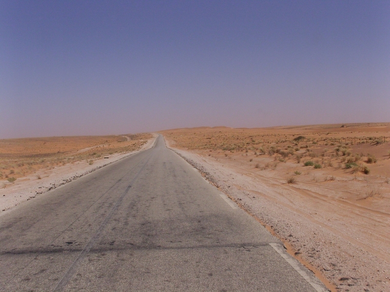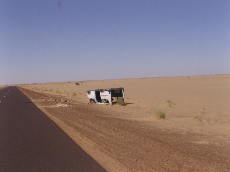 Gegen 10 wachten wir im Zelt wegen der Hitze auf. Blondie war auch schon wach und war ganz begeistert, wie gemütlich es im Bus gewesen sei. Er wurde vom leichten Wind in den Schlaf geschaukelt, erzählte er. Wir machten bald los, um 10.48 Uhr waren wir auf der Straße. Es folgten die nächsten beiden Kontrollposten, unsere Paßstempel wurden angesehen, sonst nichts besonderes.